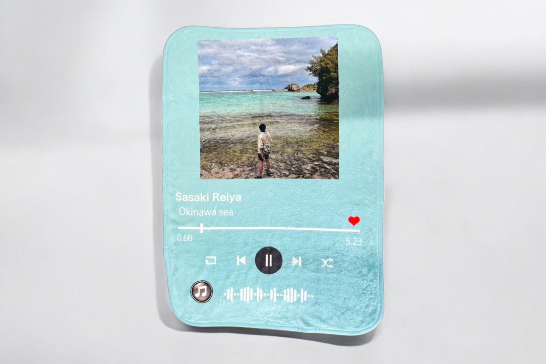 ミュージックプレイ画面ブランケットは、スマホのミュージックプレイ画面をモチーフにしたデザインで、写真の取り込みや名前などお好きな文字を入れることが出来るオリジナルのブランケットです。