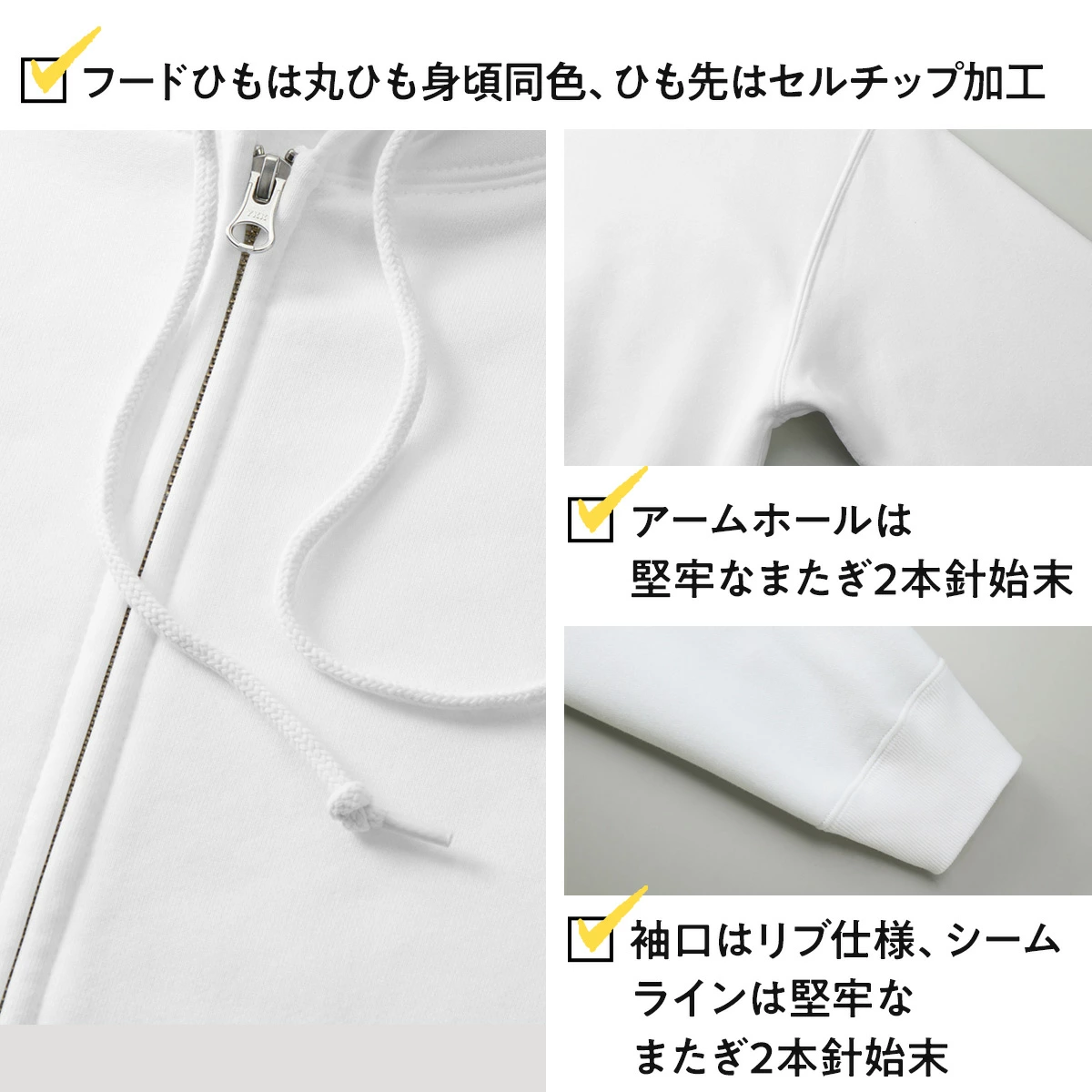 生地には、保温性と耐久性を兼ね備えた10.0オンス裏起毛を採用。