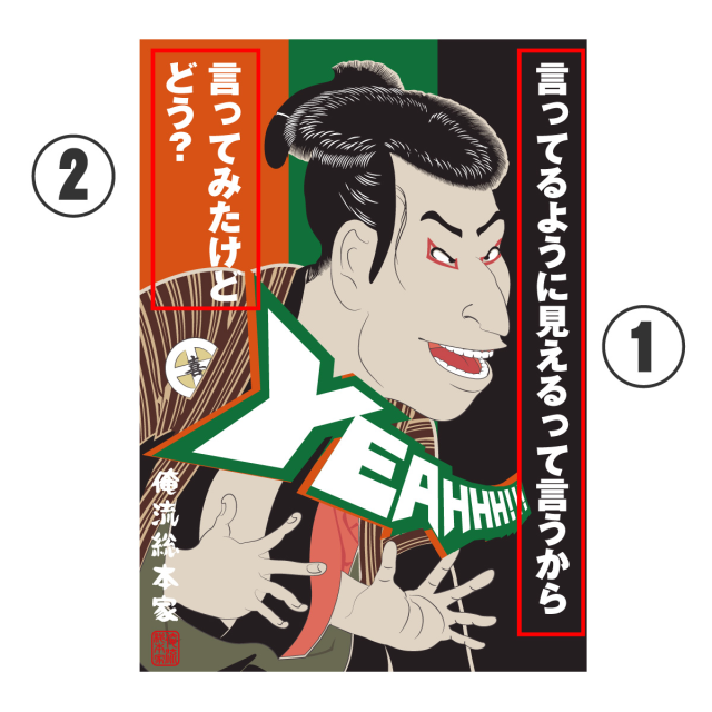 こちらの商品は『➀』『➁』の箇所が名入れの対象になります。