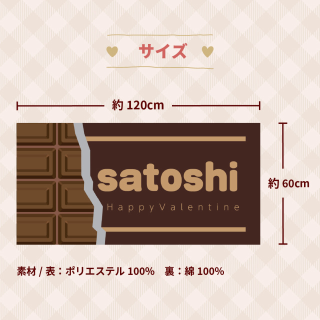 使い勝手の良い、約縦60cm×横120cmの大判サイズです。ラッピングを開けると、まるで巨大なチョコレート! あの人をバレンタインにサプライズで笑顔にしちゃいましょう。