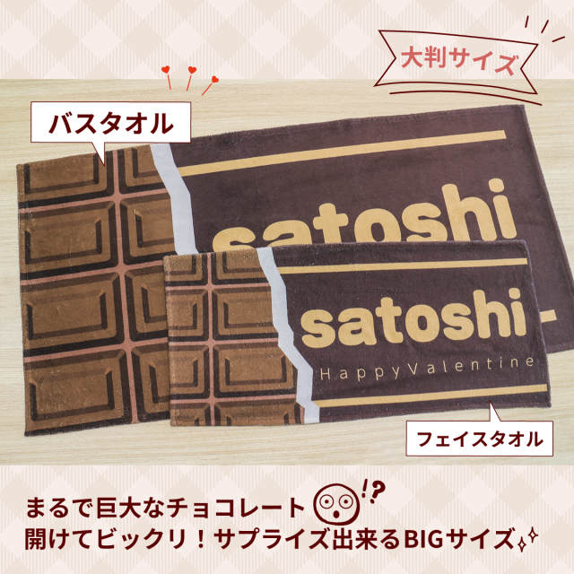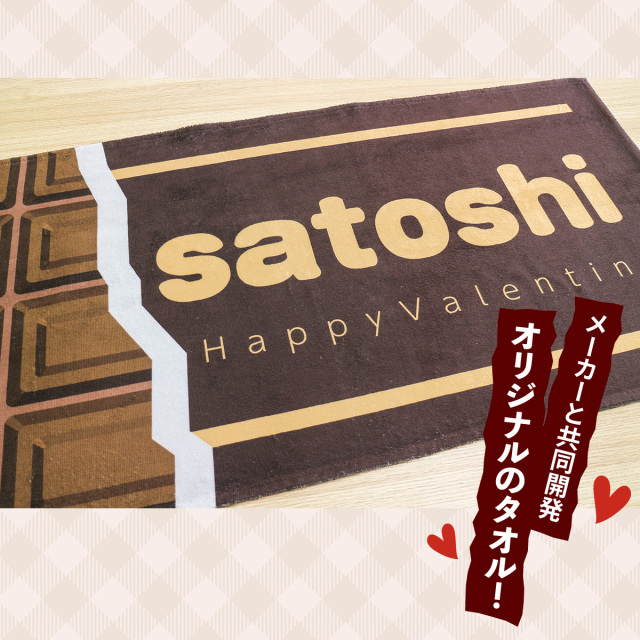 本当に大切な人には、心を込めて世界でひとつだけのバレンタインギフトを贈りましょう。俺流総本家が熱くオススメしたいのは、チョコレート柄ギフトです。板チョコ風バスタオルに名入れ&メッセージが入れられます。
