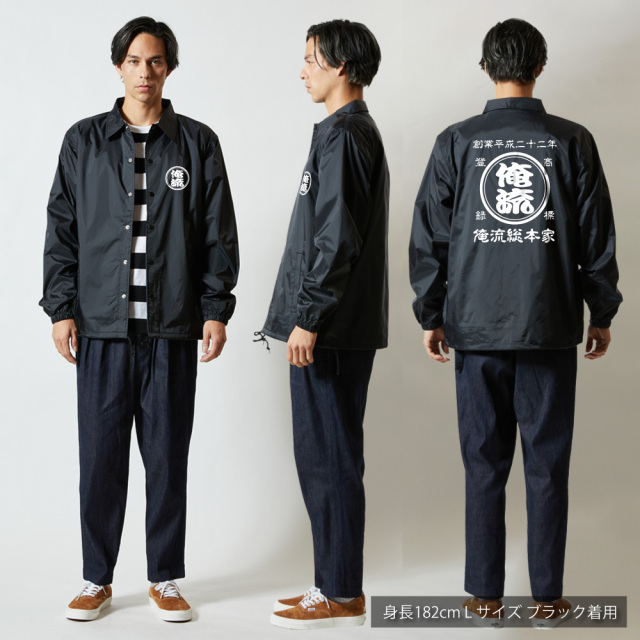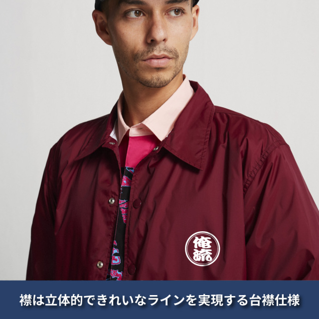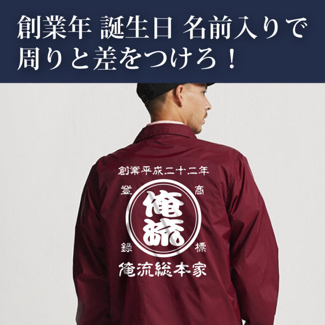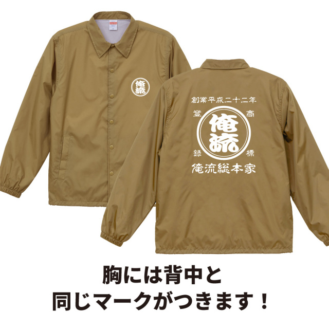 そんな声から生まれたのが、この帆前掛け風デザインの名入れコーチジャケットです。
