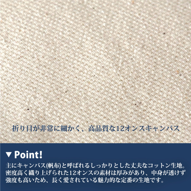 生地には、しっかりとしたキャンバス素材を使用しています。