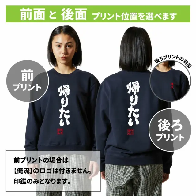 ■納品時に生産過程でつくプレス跡がございます。 ご了承ください。※一度洗えば落ちます。 ■しっかりとした生地で繰り返し着用しても丈夫な綿100%(裏パイル)高クオリティ—スウェットを使用しております。 ■1枚ずつ加工・プリントする為、商品画像デザインと多少異なる場合がございます。 ※尚、カラー・サイズ選択にご注意ください。スウェットは全て受注生産となりますので返品・交換は不可とさせていただいております。 |