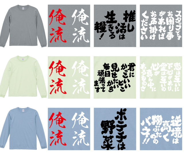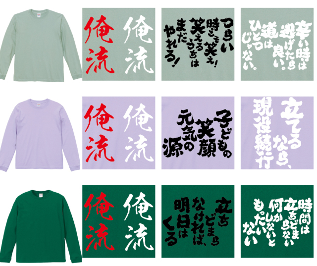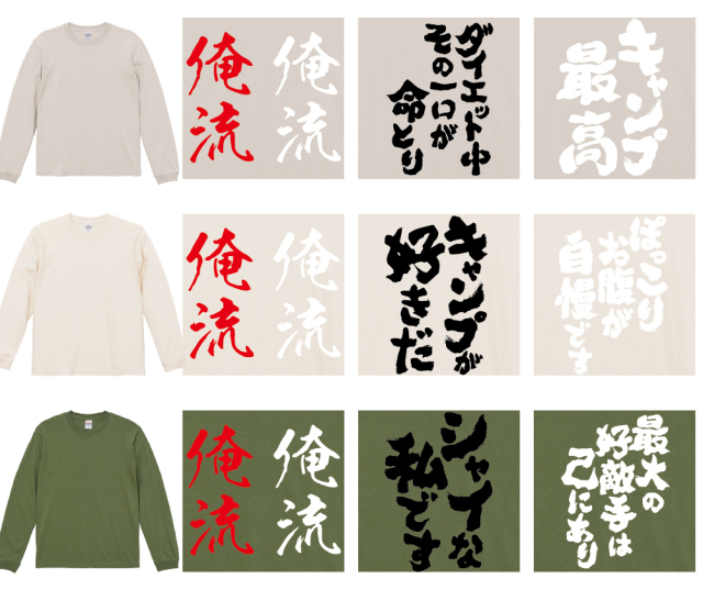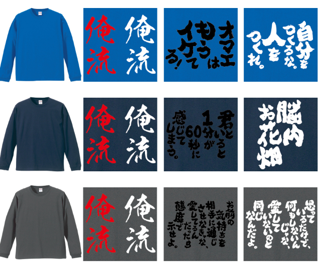 | 製品名: | 好きな文字を背中に背負う!オリジナル語録ロンT|オレ流文字 |